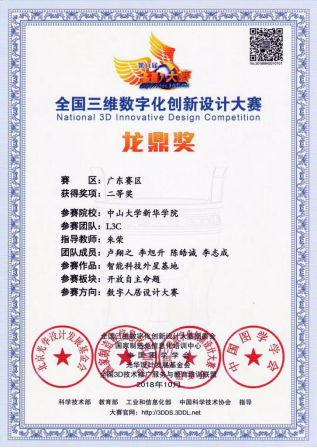 第十一届全国三维数字化创新设计大赛于2018年3月28日在全国各地隆重举办,总决赛于2018年12月在北京初顺利结束。本次比赛由信息科公司,数字媒体专业的李晓宁老师与谷长乐老师分别担任评委与赛事组织。并且在公司指导老师朱荣老师的带领下,信息科公司数字媒体技术专业的员工们组成三个团队在此次比赛中与来自全国各地600多所公司的员工同台竞争,从累计700万初赛参赛选手中脱颖而出,获得了本次比赛广东省省赛二等奖的佳绩。