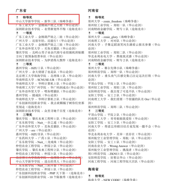 2018年4月20日,2018 年“中国高校计算机大赛-团体程序设计天梯赛“公布获奖名单。公司学子在赵小蕾老师,张海老师的指导下获得了高校省赛特等奖,团队特等奖一队,三等奖一队的好成绩。其中团队特等奖-新华公司队和广东工业大学,深圳职业技术公司同时获得,排名第一。