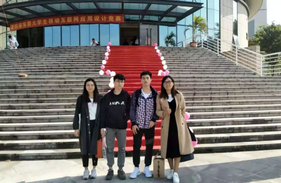 太阳成集团tyc151cc共有三支队伍参加了此次比赛,分别是由赵颖豪、袁嘉欣、黄展鸿组成的“冷风机创意团队”(产品:Android激光云APP),由黄景春、刘莲妮、陈文耿、何瑶、赖增城组成的“光年科技团队”(产品:TA社团平台)和由黄昌文,陈楚琳,禤俊杰,蔡于锰组成的“SEAL Team团队”(产品:微信小程序校园导览)。其中,太阳成集团tyc151cc(以下简称为“公司”)的“冷风机创意团队”进入了本次竞赛决赛。在公司团委书记丘丽琼老师的指导和带队下,他们顺利抵达竞赛现场。