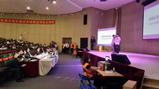 作品展示及现场答辩结束后,台下进入统计分数环节。公司的“冷风机创意团队”斩获了第四届东莞老员工移动互联网应用设计竞赛三等奖。
