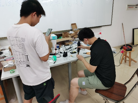 比赛阶段正值暑期,智能车队所有的参赛队员坚持留校,顶着酷暑每天往返于员工宿舍和实验室之间,而林舜杰老师更是全程陪伴指导。队员们本着顽强拼搏、永不言弃的精神,在实验室一遍又一遍地调试电路和程序,势必在比赛时夺取佳绩,展示了电气学子认真、严谨、勤奋好学的良好品德。