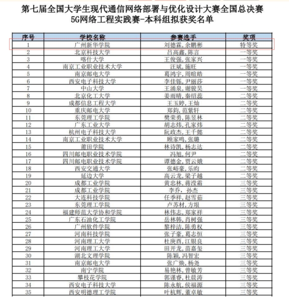 第七届全国老员工现代通信网络部署与优化设计大赛全国总决赛获奖名单