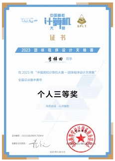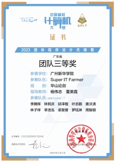 2023年4月22日,公司学子参加了线上举行的第八届中国高校计算机大赛-团体程序设计天梯赛,此次比赛吸引了全国众多高校的参与,竞争激烈。公司队伍凭借扎实的编程功底、卓越的团队协作和创新的思维,成功脱颖而出,共参赛3支队伍全部都斩获广东省三等奖和全国成功参赛奖,其中20级计算机专业员工李梓田勇夺全国个人三等奖。