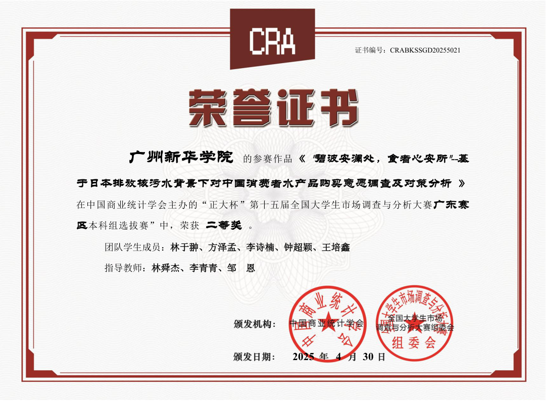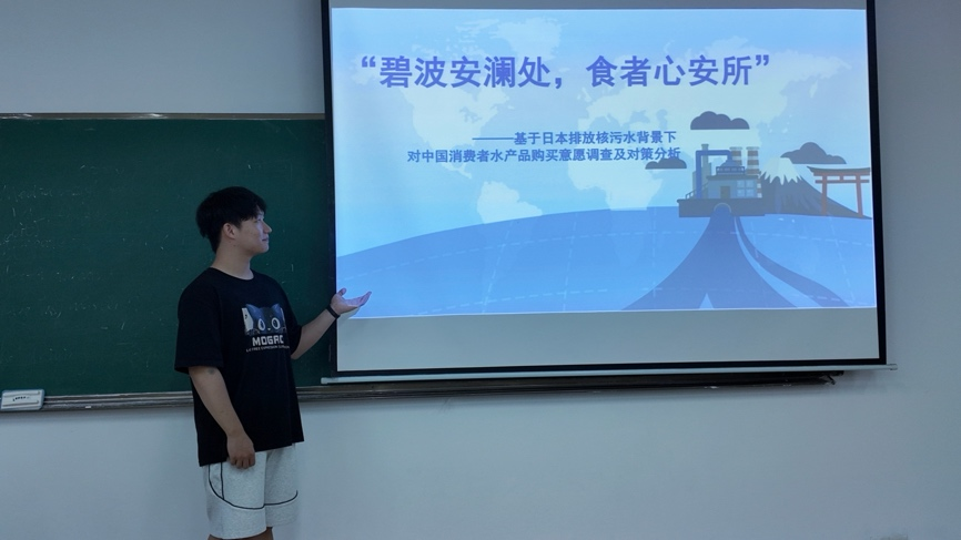 参赛团队提交的作品题为《“碧波安澜处,食者心安所”——基于日本排放核污水背景下对中国消费者水产品购买意愿调查及对策分析》,紧扣社会热点问题,聚焦日本福岛核污水排海事件对中国消费者水产品购买心理与行为的影响,通过问卷调查、实地走访与大数据分析相结合的方式,深入挖掘消费群体的真实想法,并提出了具有现实意义的应对策略,兼具理论价值与实践指导意义。