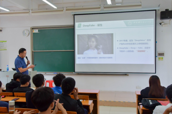 倪江群教授首先声明讲座的主题面向假脸检测的深度网络框架,用各种案例为大家打开AI假脸这一领域的大门,引领师生探索这一领域的技术与应用。
