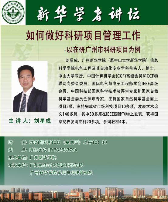 讲座主题:如何做好科研项目管理工作-以在研广州市科研项目为例