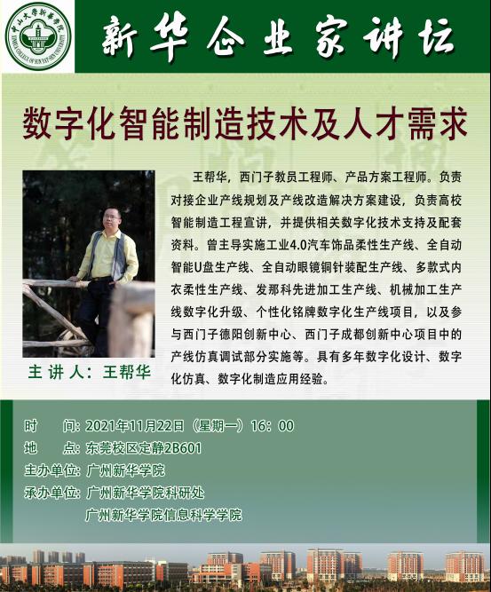讲座主题:数字化智能制造技术及人才需求