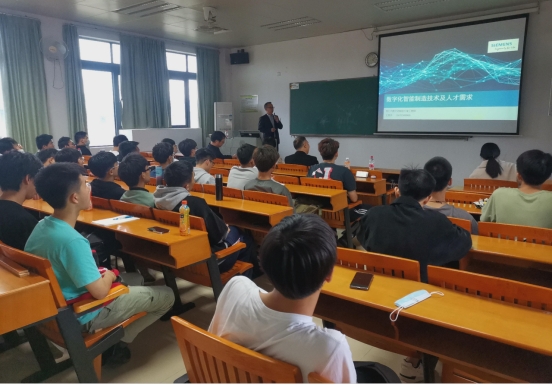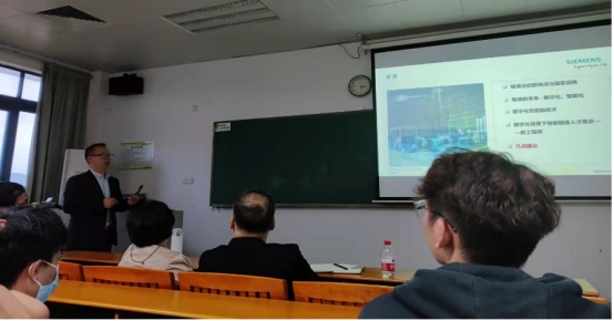 在讲座开始前,李宁书记致欢迎词并作动员。讲座中王帮华先生向大家阐述了西门子关于智能制造的理念:数字化智能制造技术。接着介绍了西门子在数字化智能制造方面所做出的努力。