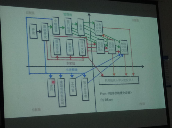 曾青青老师顺势对国内行业的情况进行了分析讲解,讲明软件的生命周期,列举了程序员的成长历程和发展方向,点明要成为资深软件工程师的方法只有量的堆积,一将功成万骨枯。还列出了软件工程专业的各个研究领域,但是,曾青青老师表示这只是现在的领域,四年后将会天翻地覆,说明了持续学习的重要性。就研究方面指出团队的作用,让大家明白成功就要与强者为伍的道理。并希望同学们通过这次会议学会做事,学会共事,学会求知,学会生存。