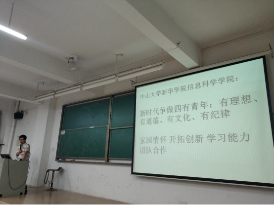然后由班主任曹汉华老师针对17计科全体同学,就四有青年的内容为各位同学讲解,并传承信科院的四有青年精神。曹老师讲到如下内容:珍惜时间,规划未来;调整状态去寻找学习方面感兴趣的突破之处;学会自控时间分配,亲情与友情相结合等。