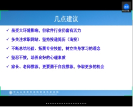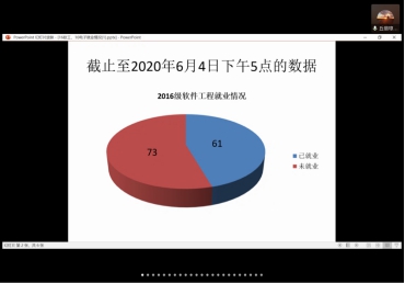 辅导员丘丽琼老师介绍了目前专业实时的就业情况,随着国内全面复工复产,同学们也在积极应聘与就业,截止6月4日下午5点统计就业率达45.52%。根据最新的相关政策,毕业生享受两年的择业期,家长与同学们无需担心应届毕业生身份的问题,可以先就业再择业。