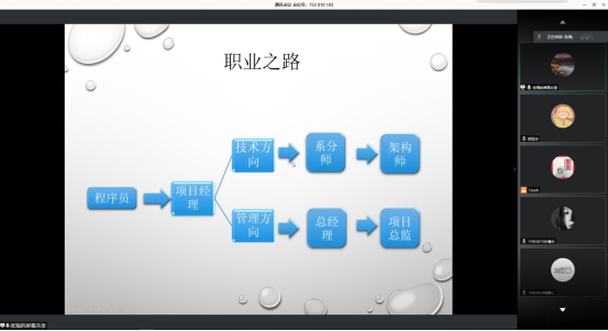 接下来,17软工专业老师刘金秀老师为我们讲解了学习、求职就业的三种关键能力,希望同学们砥砺前行。骆金维老师讲解了员工就业中需要明白的地方,首先是适应员工身份到求职人员身份的转变,清楚两者的区别。其次,认清当前就业困难的困境,并且积极去寻找工作。对目前的处境清楚才能有正确的方法和心态去面对困境。最后,保持不断进取的心,才能不断进步。针对社会上软件人才的需求,张海老师介绍了软工就业前景和软工就业所需要的基本素质,认为专业岗位就业技术壁垒高,就业前景较为良好,以及未来的职业发展路径。指出软工就业岗位要求具有方向性,可以走技术和市场两个方向,对两个方向的工作岗位作了讲解。张海老师指出,面对就业同学们应该摆正心态:1.明确求职态度;2.熟悉求职的过程,做好准备。眼光要开放、放长远,可以考虑外地工作机会。最后张海老师鼓励同学们尽快针对自己的不足做出行动,心态不能佛要积极进取。