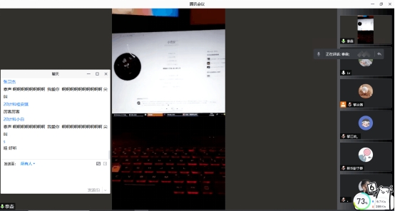 联欢会上赵小蕾老师同她孩子以及各位同学们的演唱,惹得倾听的同学敲字呐喊。男生们清唱情歌,低沉的嗓音让人着迷。女生那银铃般的悦耳歌声,让人心情愉悦。聊天框内成了打气加油区,为害羞而犹豫不决的同学打气出演,更有陪同演唱者。作为其辅导员的吕娇老师此时此刻更像是一名员工,与大家一起狂欢。在大家的歌声中我们能听出对美好明天的希望,相信大家抗击疫情的信心将大大增加。