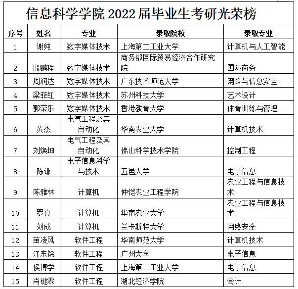 随着2022年考研招录工作接近尾声,2022届毕业生考研捷报频传。公司2022届毕业生共有15名学子考研升学成功,再创佳绩。国内升学13人,包括华南师范大学、华南农业大学、广州大学等重点高校,境外2人,分别为香港教育大学、兰卡斯特大学。