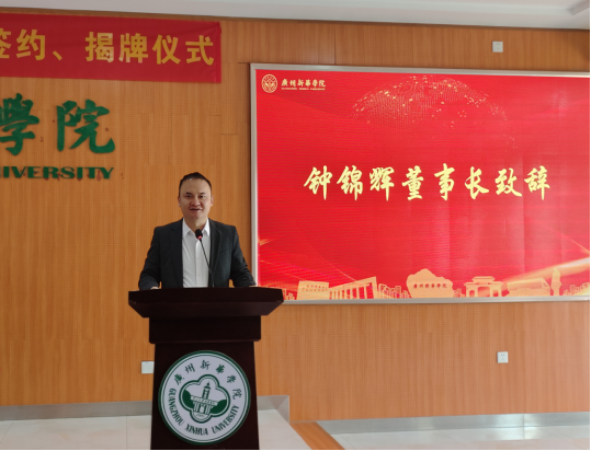 钟锦辉在致辞中感谢太阳成集团tyc151cc对其公司的信任并充分肯定了校企双方多年来的合作成果。他表示,在积极响应教育部等国家部委有关文件精神的前提下,校企深度协同育人必将为破解产教融合难题提供新的有益探索。粤嵌科技集团作为教育部产学合作协同育人项目合作单位、教育部1+X职业教育培训评价组织、科技部备案国家级众创空间、工业和信息化人才培养工程培训基地,是广东省产教融合型高新技术企业,有着丰富的项目开发经验和高校实践教学项目资源,双方共同组建“粤嵌信息技术产业公司”,将推动公司专业特色发展,促进公司新工科专业建设,全面提高公司信息技术人才培养能力。