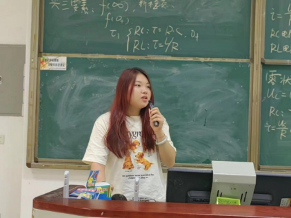 首先登台分享的是荣获校级奖学金、领衔校级大创项目的张晓彤学姐,她以自身经验为鉴,在学习、实践和竞赛方面提出了宝贵的建议。她提醒同学们需要有一个清晰的目标、合理的计划和良好的生活习惯,她寄语学弟学妹们要勇于试错,以梦为马,不负韶华。