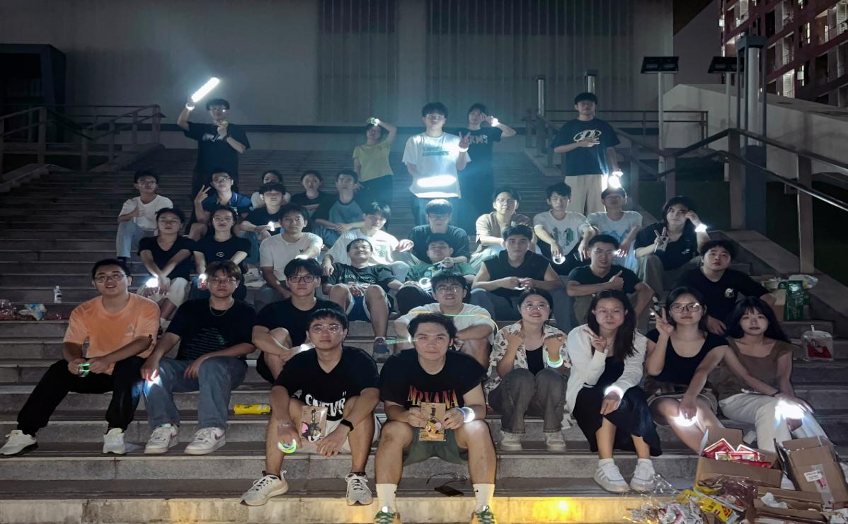 刘德霖(左上角站立)组织同学们参与班级团建