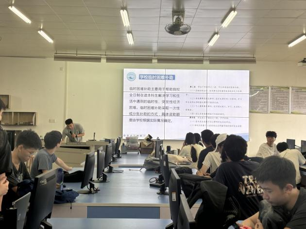 主题班会期间,各辅导员深入班级,依据统一的PPT内容,详细解读了国家奖助学金、国家助学贷款以及公司奖助学金、企业及个人捐助奖助学金等各类资助项目的申报条件和申请流程。过程中结合往届员工申请成功和失败的实际案例,让同学们更直观地理解政策要点。同时,通过互动问答环节,解答同学们对资助政策的疑问,确保每位同学都能清晰了解资助政策内容。