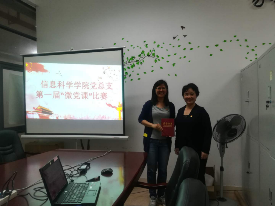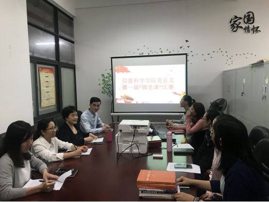 为认真学习习近平新时代中国特色社会主义思想和党的十九大精神,深入贯彻落实教育部党组关于高公司党组织“对标争先”的建设要求,根据中共中山大学新华公司委员会的相关文件精神,4月16日下午,信息科学公司党总支在东莞校区格物楼2A105举行了第一届“微党课”比赛。信息科学公司党总支书记李宁、教工党支部书记陈怡华以及信科公司党员教师代表、办公室主任黎良宇担任本次比赛评委,全体辅导员参赛,师生党员代表观摩。