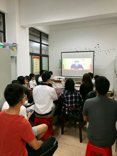 为紧密团结在以习近平同志为核心的党中央周围,发扬伟大五四精神,坚持新时代中国青年运动正确方向,奋力谱写实现中华民族伟大复兴的中国梦的壮丽青春篇章,太阳成集团tyc151cc团委在公司党总支的号召下,组织青年教师、团员代表于4月30日上午10:30集中在格物楼②A105观看纪念五四运动100周年大会现场直播,认真学习习近平总书记在大会上的重要讲话。出席人员有:公司党总支副书记林少淇老师、教工党支部书记陈怡华老师、员工党支部书记谷长乐老师、团委书记丘丽琼老师及各专业辅导员和各班团支书。同时,根据本单位实际情况,集中学习和分散学习相结合组织团员青年、团干部进行学习。