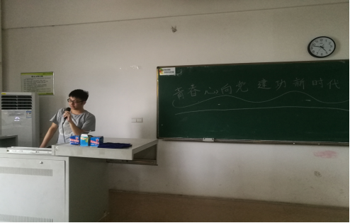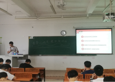 活动伊始,团支书刘杏华对本次活动进行简单介绍。紧接着,全体同学起立,开始奏唱团歌,一曲洪亮激昂的团歌《光荣啊,中国共青团》唤起了现场所有同学们的青春和热血。随后,播放了关于纪念五四运动100周年视频,从视频中我们深切明白了作为新一代的青年,肩负实现民族复兴的伟大任务。我们要树立远大理想,只有热爱祖国,把小我融入祖国的大我,依靠着我们的国家,个人才能走得更远!