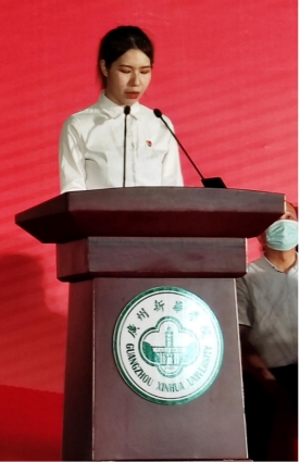 2018级英语专业钟俊桐同学表达我们员工是与新时代同向同行、共同前进的一代。今年正值中国共产党的100周岁生日,我们要尽力实现习近平总书记对新时代青年的盼望:以实现中华民族伟大复兴为己任,增强做中国人的志气、骨气、理性不负,时代不负韶华,不负党和人民的殷切期望。