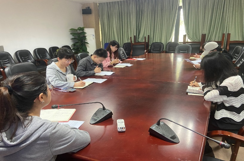 党总支副书记帅莉正在与院系毕业班老师做就业创业指导工作