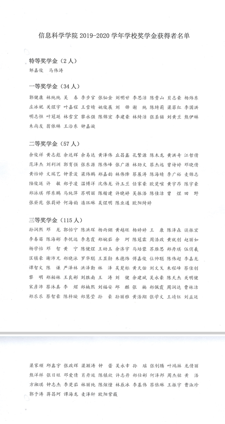 2019-2020学年公司奖学金获得者名单