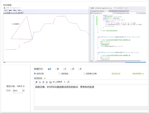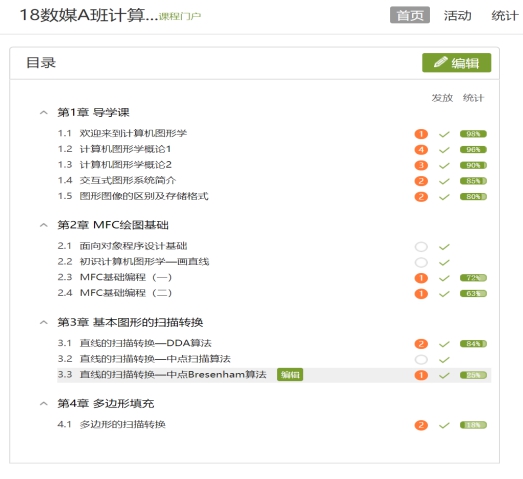 《计算机图形学》是一门理论性强、综合性强的专业必修课程。开课前,通过与教学主任、专业秘书讨论,根据新华学子的特点及应用型人才的培养目标。本课程拟采用“理论+实操”的方式进行授课,让员工在实操中获取成就感,同时通过理论的学习加强对底层原理的理解,为员工后续的继续深造尊奠基石。在试课阶段,通过与员工直播交流及课后与学委的沟通,确定员工的编程语言的学习基础,商讨网络教学的上课方式。