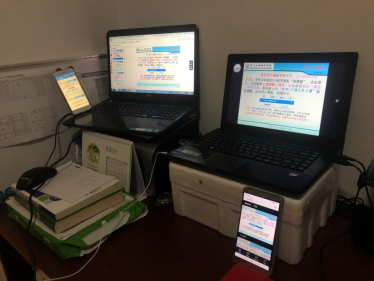 刘华章老师在开课前10分钟进行开课准备,检查上课设备,开启授课平台,让员工提早签到进入课堂。首次直播要告知进入直播课堂准确操作方法,推送资料内容方式,网上签到方式,调查员工意向(含上网方式、直播时长、课堂笔记、答题类型、答题数量、课外学习平台、课外学习时间、预习方式、预习素材等等)。员工反馈问题最多的是网络卡顿,时延严重,老师讲的PPT内容过一段时间才收到,为此,刘华章老师首先从自身找原因,解决自身问题,即以员工身份另增加一台笔记本和手机进入课堂,监测网络时延问题,当监听监看PPT正常了,再继续进行网上直播,有效解决了时延问题。