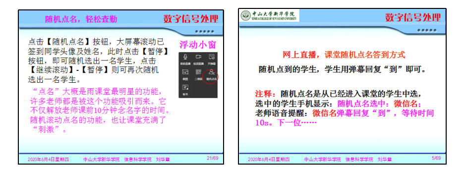 刘华章老师采用雨课堂直播介绍员工进入课堂和签到方式