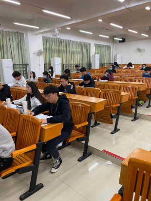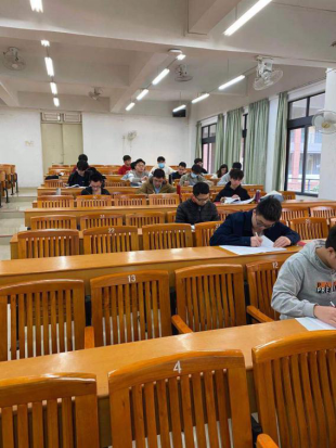 计算机专业员工在期末考场认真答题
