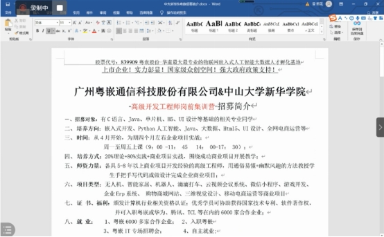 最后,曾老师针对达不到公司要求,但想继续从事和本专业相关工作的同学,提出了粤嵌公司的人才培养方案,主要针对有相关技术基础的同学展开培养,从中能够帮助同学们加深相关技术的学习及积累项目经验,以便找到心仪的工作。