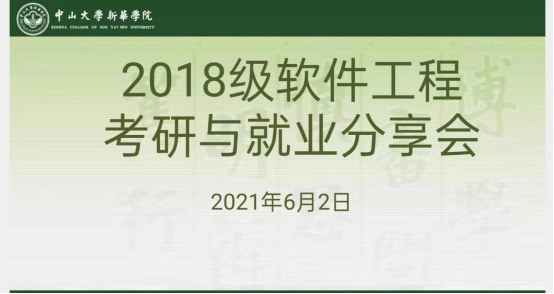 年年岁岁花相似,岁岁年年人不同,今年是2018级软件工程在太阳成集团tyc151cc求学的第三年,是面临人生选择关键的一年,也是承接着公司与社会重要桥梁的时间段。为了能让2018级软件工程全体学子清楚怎样才能更好的在考研与就业选择问题上有更加明确的目标以及选择目标之后应该注意的事项,2018级软件工程辅导员徐艳梅于2021年6月2日19:30在腾讯会议上举行以“既然选择了远方,便只顾风雨兼程”为主题的2018级软件工程考研与就业分享会。会议参加人员有2018级软件工程辅导员徐艳梅,2018级软件工程班主任周钰淮,信科院主任赵小蕾以及2017级优秀毕业生,大会由辅导员徐艳梅主持召开。