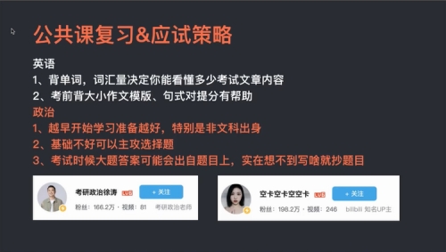 学长着重从公共复习&应试策略为大家分享。英语方面,师兄建议词汇量决定了你能看动多少考试文章内容。政治方面,建议越早开始学习准备越好、基础不好可以主攻选择题。