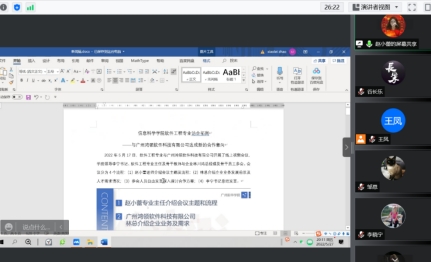 公司党总支书记李宁与软件工程专业主任赵小蕾老师通过联系广州鸿领软件科技有限公司达成新的合作意向;1)固定时间段招聘实习生;2)企业案例嵌入实训课堂;3)参与金蝶苍穹平台开展软件设计大赛,激发员工创新和应用能力,推荐优秀员工就业。