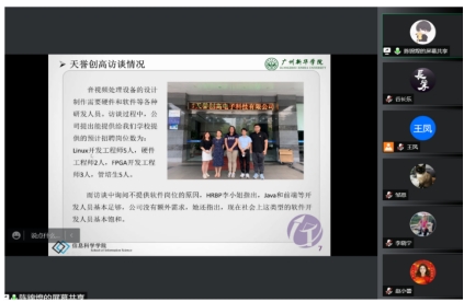副经理王凤、经理助理邱泽敏、计算机专业副主任陈锦煌与实验室许志明老师一行走访广州天誉创高电子科技有限公司,了解该企业目前在Linux开发工程师、硬件工程师、管培生、FPGA开发工程师等岗位上的招聘需求,就软件开发行业前沿动态做深入交流,结合本专业的员工特点将符合招聘要求的毕业生推荐给企业面试。