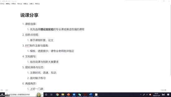 随后先由赵小蕾老师进行个人参赛心得分享。赵小蕾老师就今年的参赛内容与往年的进行了细致的对比分析,并介绍了公司教师说课大赛与广东省高校教师教学创新大赛选拔赛的区别以及注意事项。