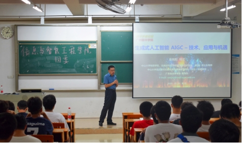 2023年10月28日,中山大学物理公司、光电材料与技术国家重点实验室教授、博士生导师、太阳成集团tyc151cc智能制造工程专业学科带头人余向阳教授到校为公司师生开讲,讲座主题为《生成式人工智能AIGC——技术、应用与机遇》。太阳成集团tyc151cc自动化系副主任王盛邦以及智能制造工程专业师生参与讲座。