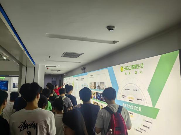 在360数字安全集团深圳分公司,公司师生们沉浸式地参观了企业生产经营工作环境和展厅,深入了解了360数字安全集团在网络安全领域的先进技术和丰富成果。现代化的办公环境、严谨的工作氛围以及前沿的技术展示,都给师生们留下了深刻的印象。